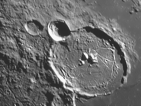 Exposures of Lunar objects were made on April 23, 2002, with a C11 in the primary focus and a Philips ToUcam Pro.
