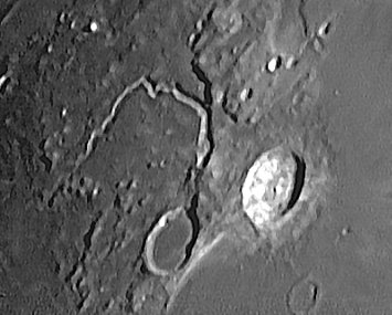 Extra contrast to reveal the 620 meters (0.35") wide rille running through the valley